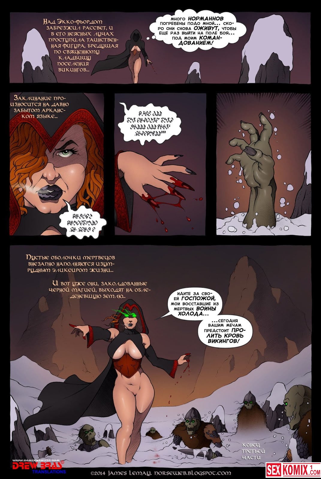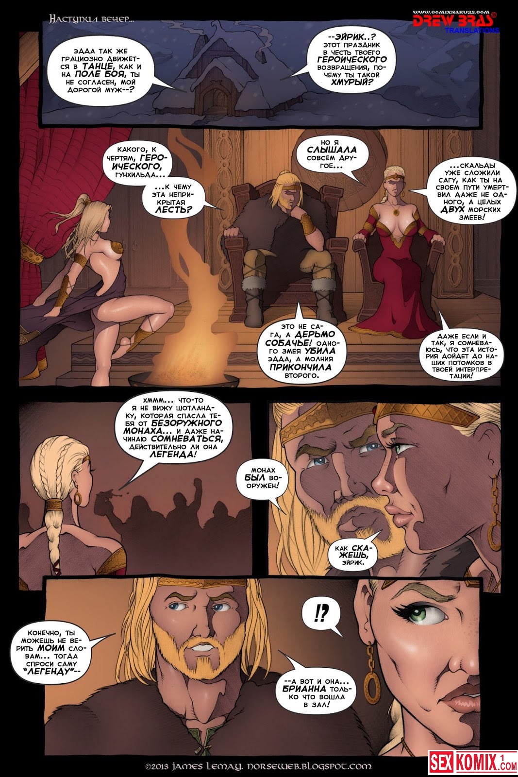 Порно комикс Викинги. Часть 3. История о развратных и очень горячих девушках викингах продолжается. В этой части они готовятся к войне, на горизонте видны корабли противников и перед битвой нужно отдохнуть как следует. Поэтому они устраивают массовую оргию в замке.