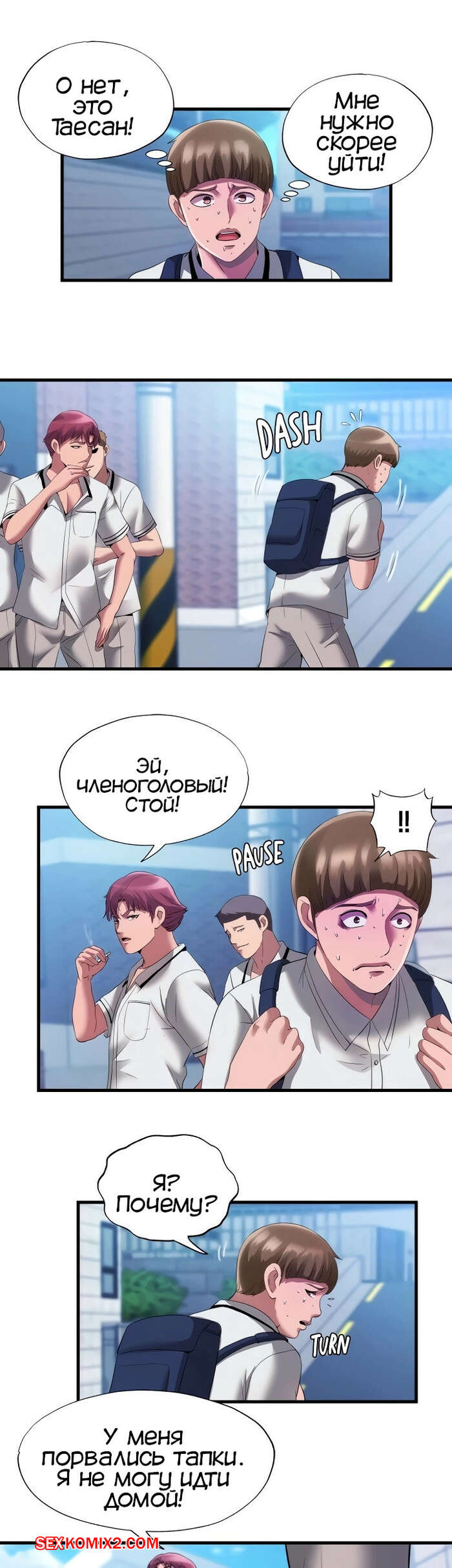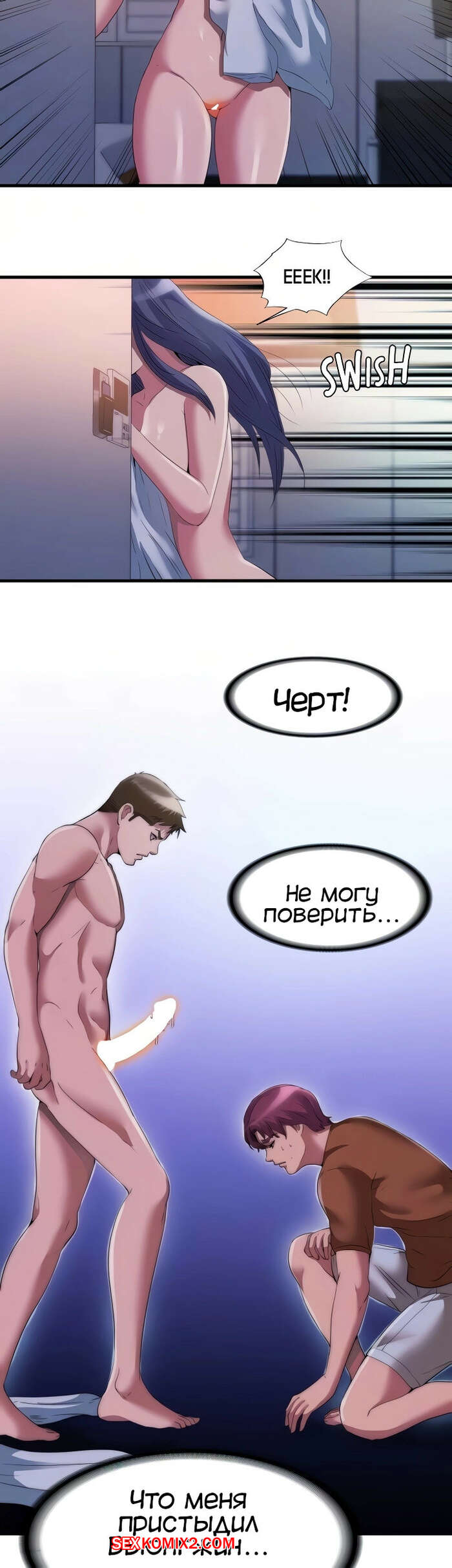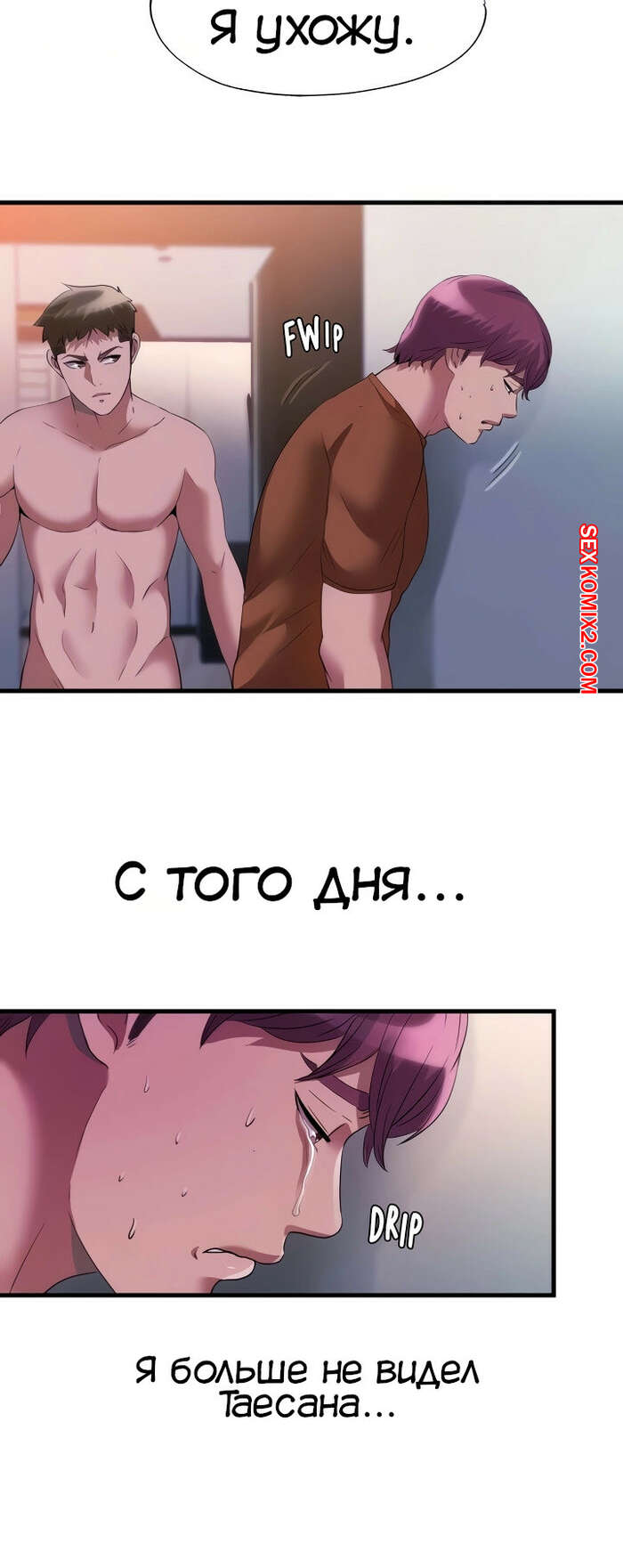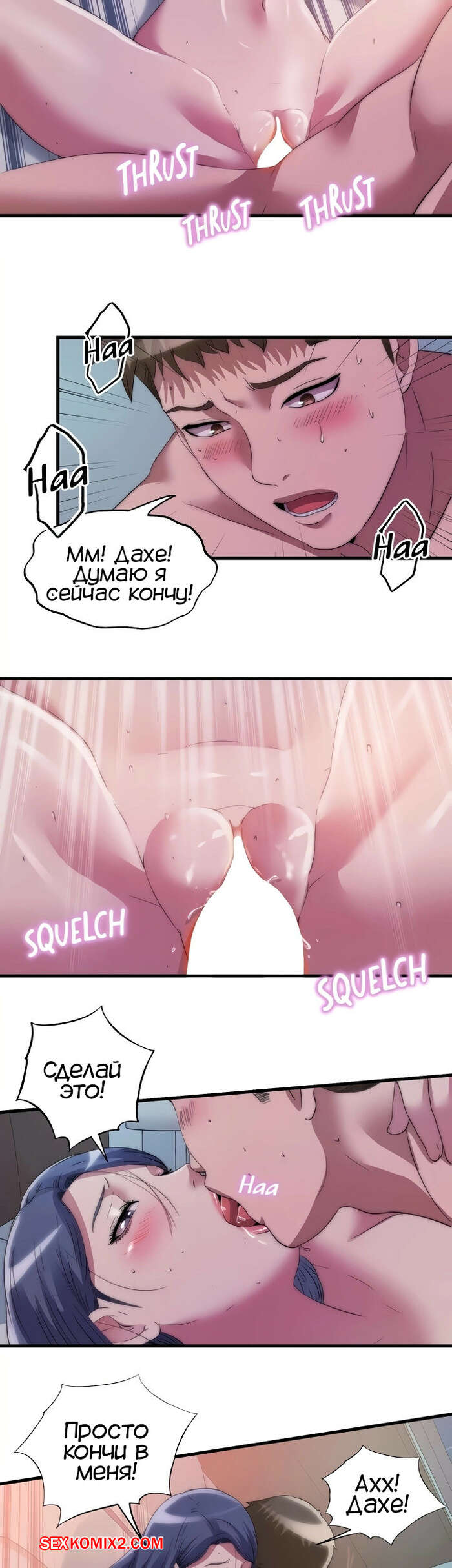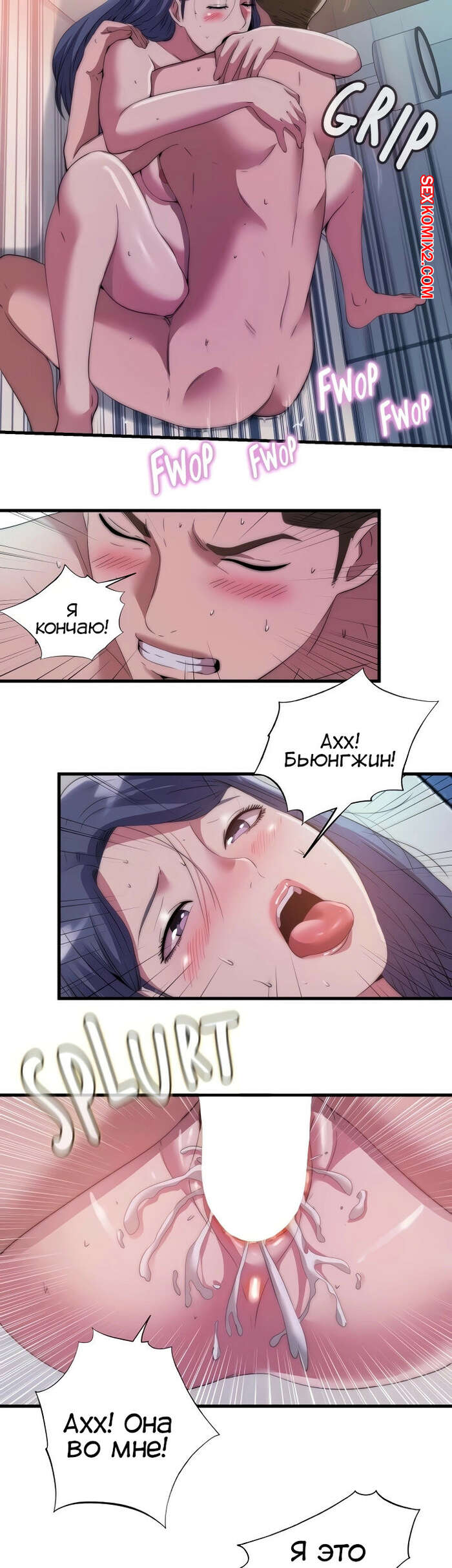 Порно комикс Жизнь бьет ключом. Часть 75. Water overflow Таесан вернулся в номер, чтобы забрать свою обувь, но Бьюнгжин вспомнил историю из прошлого и не позволил ему забрать обувь. Дахе все еще была возбуждена и дала парню себя хорошенько выебать, после чего он кончил в нее.