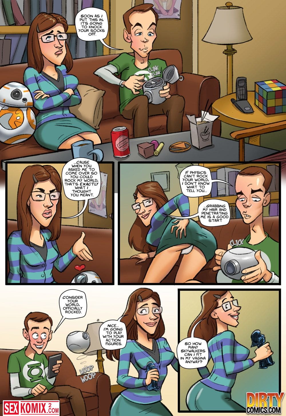 Порно комикс Теория большой оргии. Часть 2. Английский. Пени пошла на пробы, но вместо прослушивания ей устроили секс кастинг и блондинка на него согласилась. После то как она отработала несколько черных членов её взяли на главную роль в порно фильме. Когда ей муж увидел это видео ему ничего не оставалось кроме как дрочить на то как его жену трахают чернокожие.