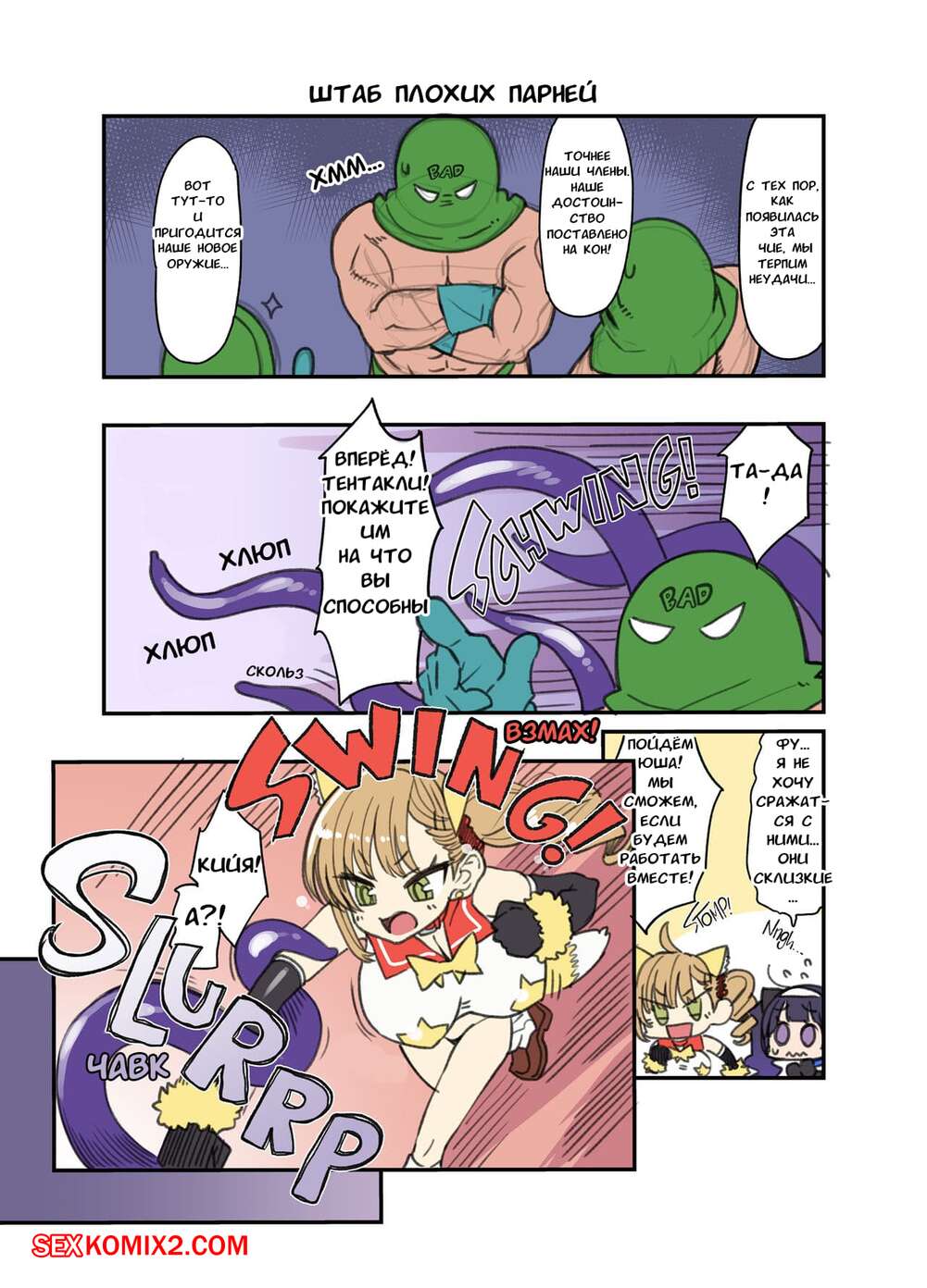 Порно комикс Туалетная девочка волшебница Юса. Часть 2 Горячие сисястые красотки подверглись нападению монстров с щкпальцами. Они лишили девушек возможности двигаться, после чего выебали их во все дырочки, доставляя им огромное удовольствие.