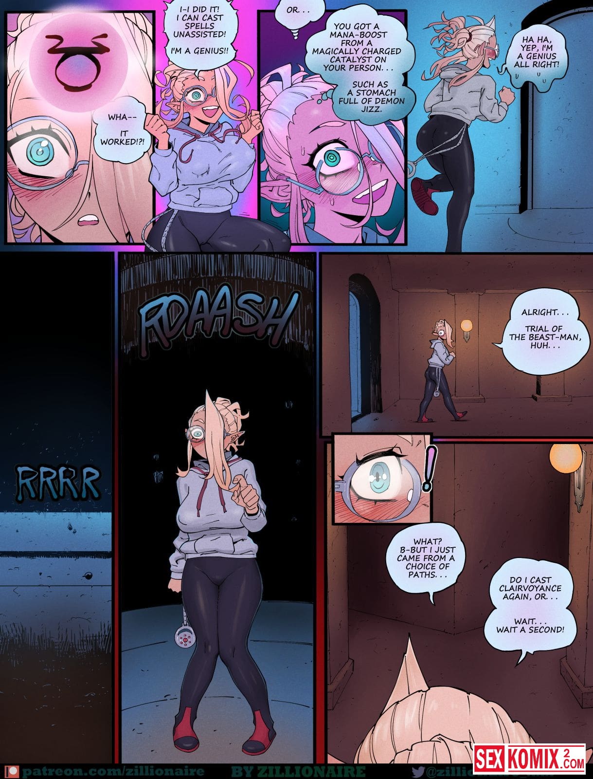 Порно комикс Экзамен по подземельям. Английский. Девушка маг с белыми волосами должна пройти испытание в подземелье. Уже на входе её начали проверять на прочность и охранник трахнул красотку. Но самое интересное конечно же было внутри.