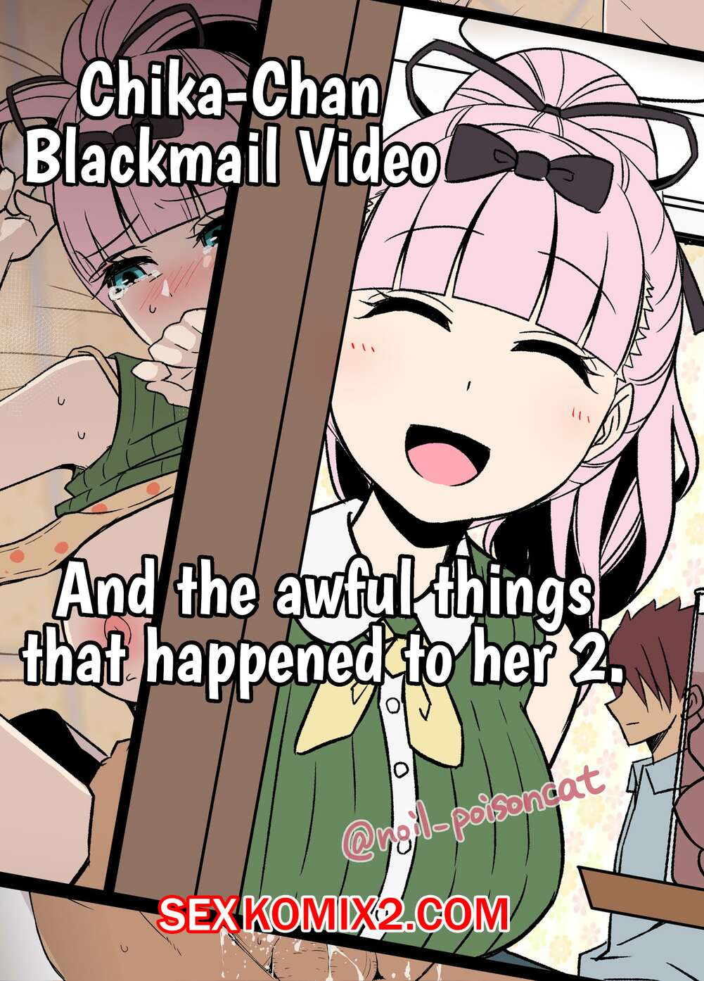 Порно комикс Шантаж Чики тян 2. Chika chan o Douga de Odoshite Warui Koto o Suru Hanashi 2 Парень стал шантажировать свою горячую сисястую подругу. Ей пришлось раздеться перед ним и сосать его большой хуй, после чего он ее хорошенько выебал, обильно кончив.