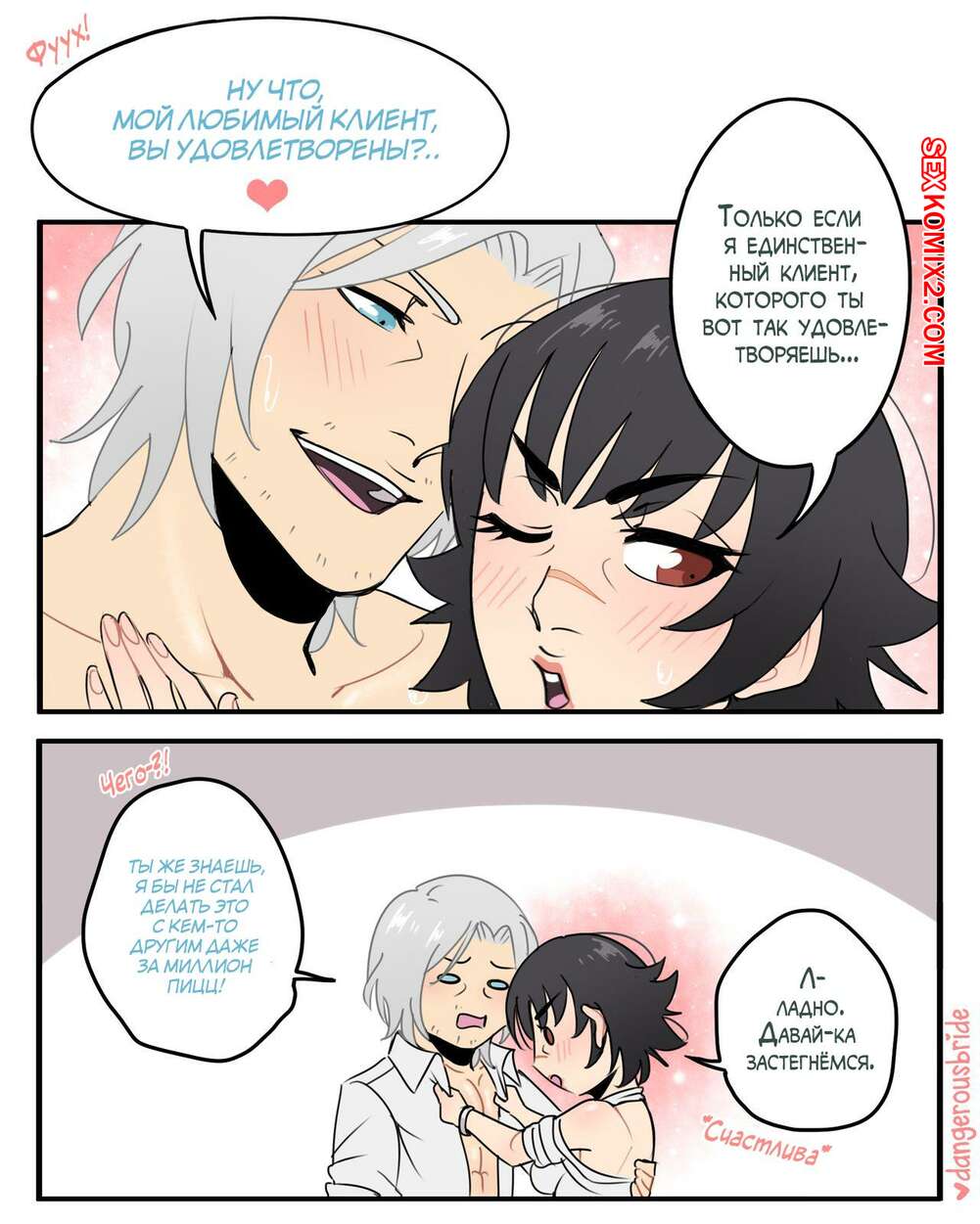 Порно комикс Bleach. Леди х Данте. Часть 6. Dangerous Bride Горячая сисястая брюнетка была очень возбуждена и хотела трахаться. Она разделась перед своим дружком и стала сосать его большой хуй, после чего дала ему себя выебать.