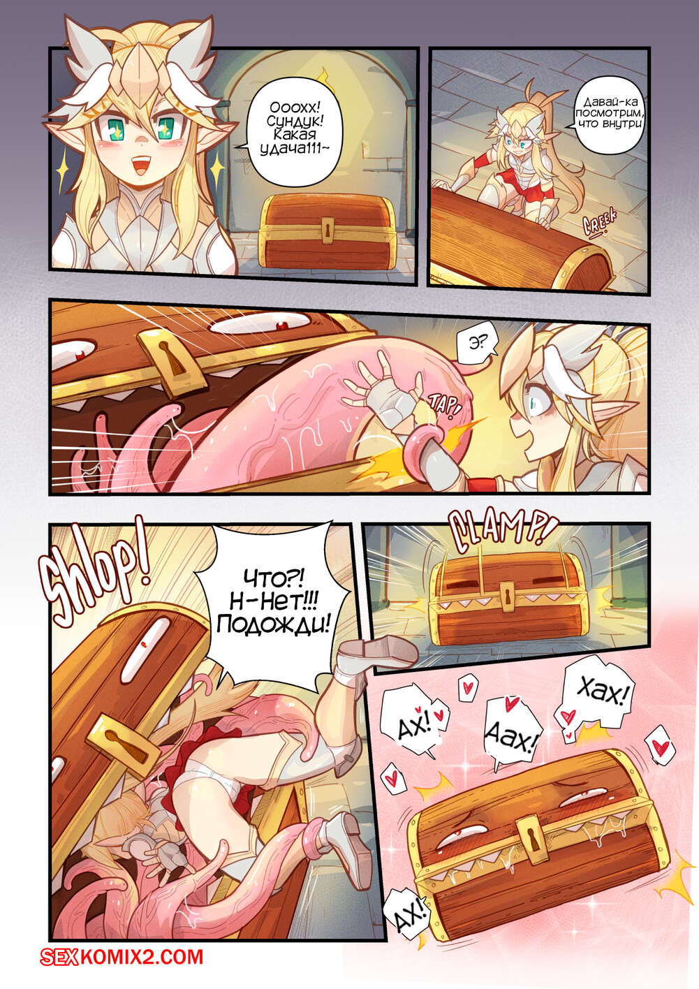 Порно комикс Сундук удачи. Chest of Fortune. Mr.E Сексуальная блондинка нашла магический сундук. Она открыла его, и ее сразу схватили тентакли, которые хорошенько выебали все дырочки красоток, доставив ей огромное удовольствие.