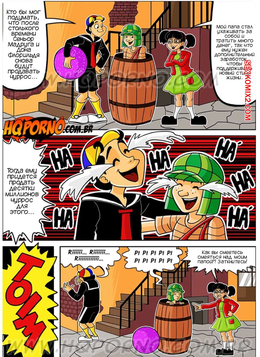 Порно комикс Чавиньо. Часть 10. Chavinho. HQporno Пати сбила все чурросы, что продавал сеньор Мадругао, так что мужик решил воспользоваться моментом, чтобы трахнуть красотку. Она боялась, что ее тетя разозлится, поэтому позволила соседу себя выебать.