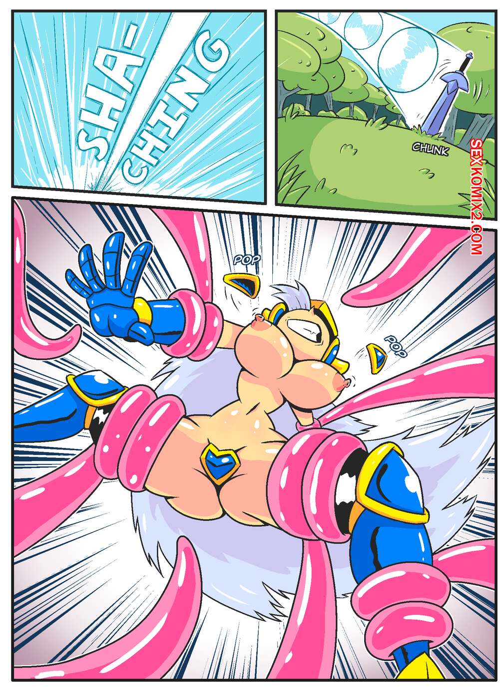 Порно комикс Сисястый квест. Часть 1. Booby Quest. DrShanks24. Сисястая блондинка отправилась на задание, на котором она столкнулась с монстром с тентаклями. Существо схватило девушку и хорошенько выебало ее во все дырочки, заполняя ее спермой.