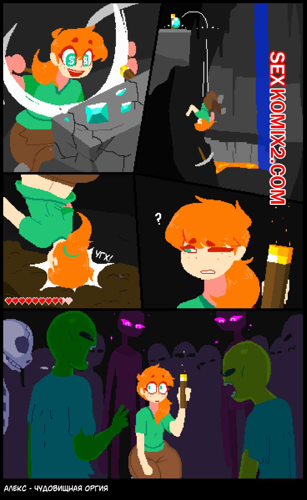 Порно комикс Minecraft. Алекс. Чудовищная оргия. GlazedBakery На горячую рыжую красотку Алекс напали монстры, которые решили повеселиться с девушкой. Они раздели ее и дали ей отсосать свои большие хуи, после чего выебали ее во все дырочки.