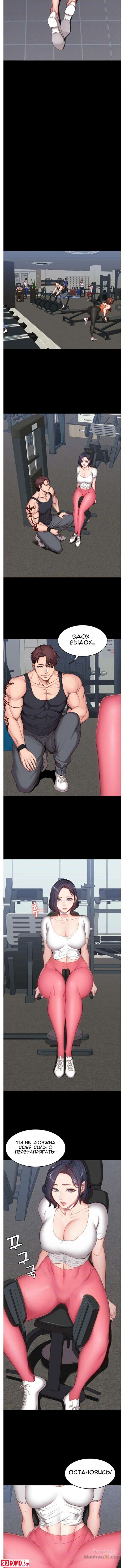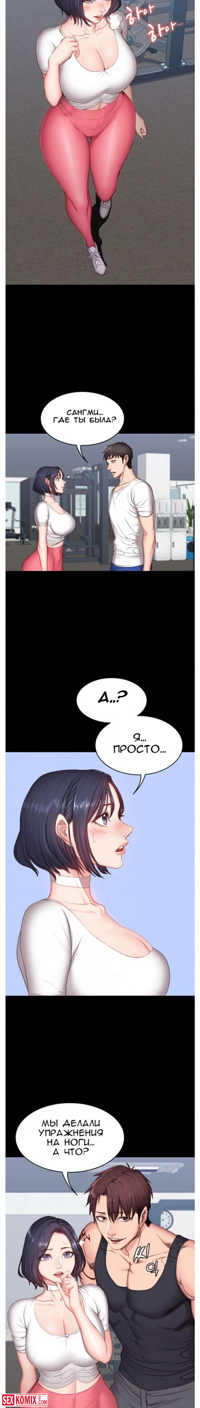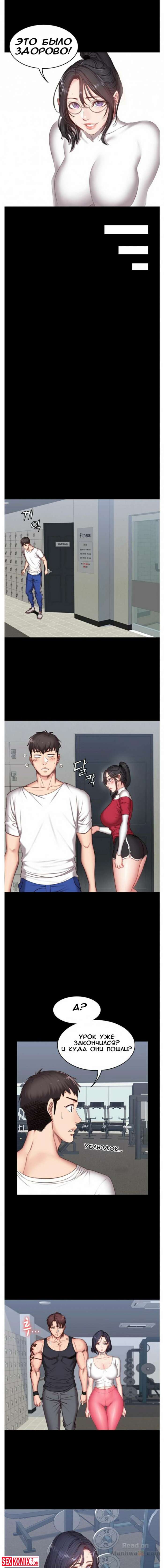 Порно комикс Фитнес. Части 8 и 9. Нова клиентка у тренера очень горячая штучка. Вечером в зале уже не было людей и девушка начала соблазнять своего тренера.