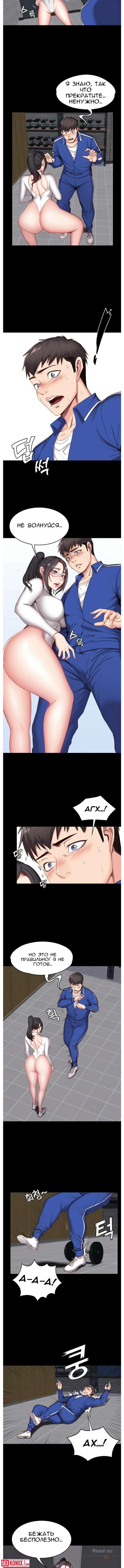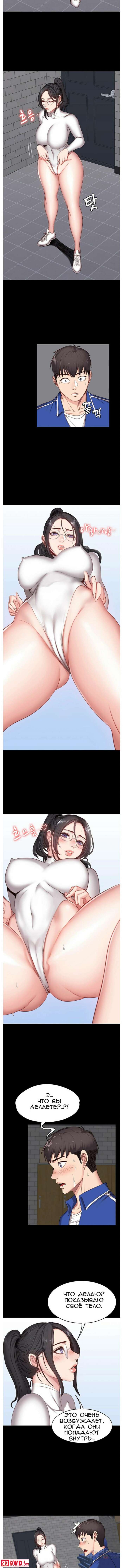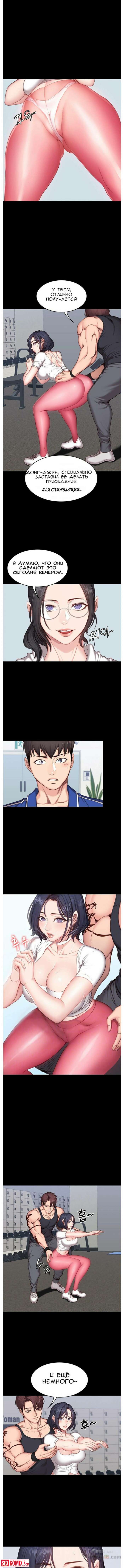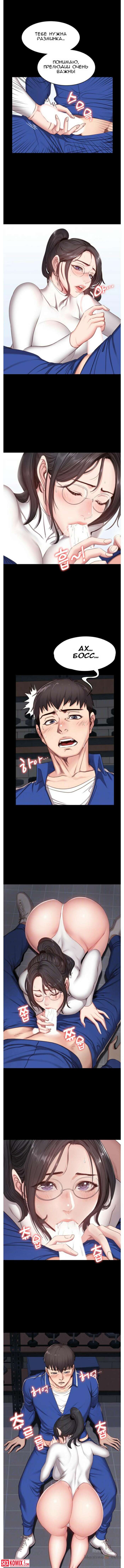 Порно комикс Фитнес. Части 8 и 9. Нова клиентка у тренера очень горячая штучка. Вечером в зале уже не было людей и девушка начала соблазнять своего тренера.