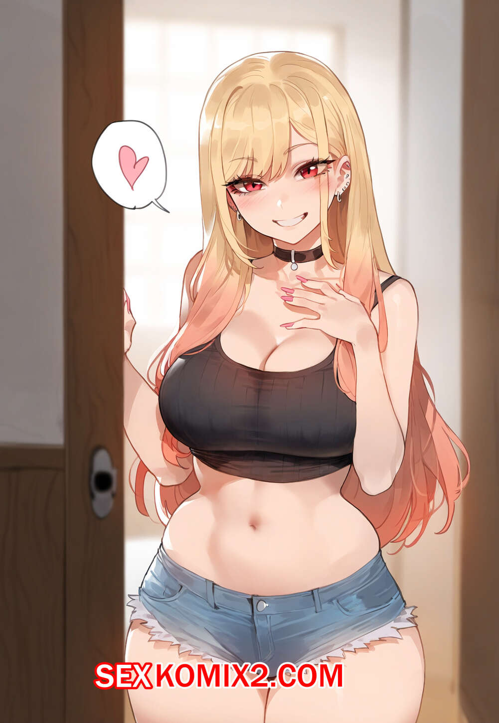 Порно комикс Kitagawa Marin. Floox. Горячая блондинка была очень возбуждена и решила повеселиться со своим темнокожим дружком. Девушка разделась и стала сосать большой хуй парня, после чего дала ему себя выебать.