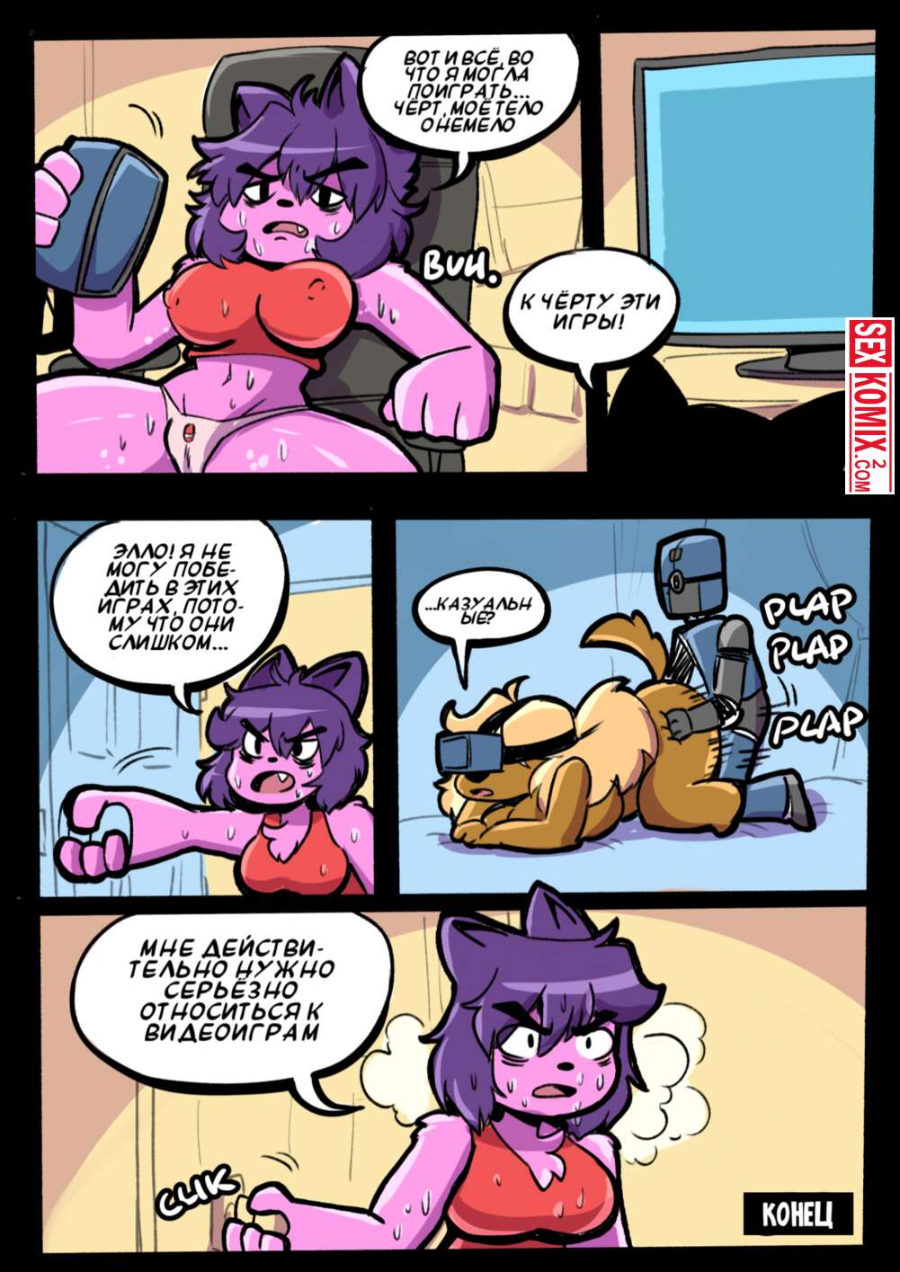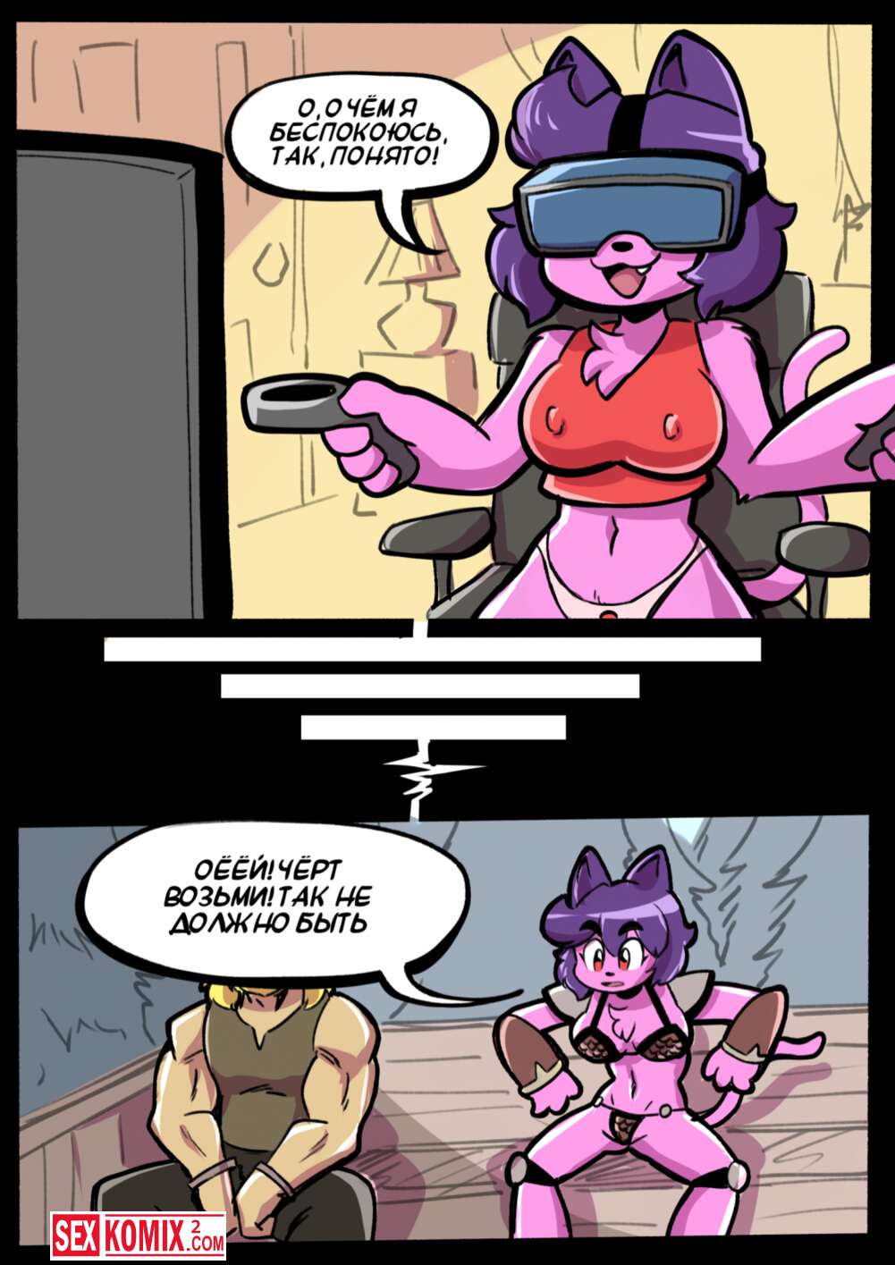 Порно комикс Фурри. Хардкорный гейминг. Девушка купила самую новую приставку для виртуальной реальности. Но когда зашла в игру поняла, что там все завязано на сексе и придется постоянно трахаться.