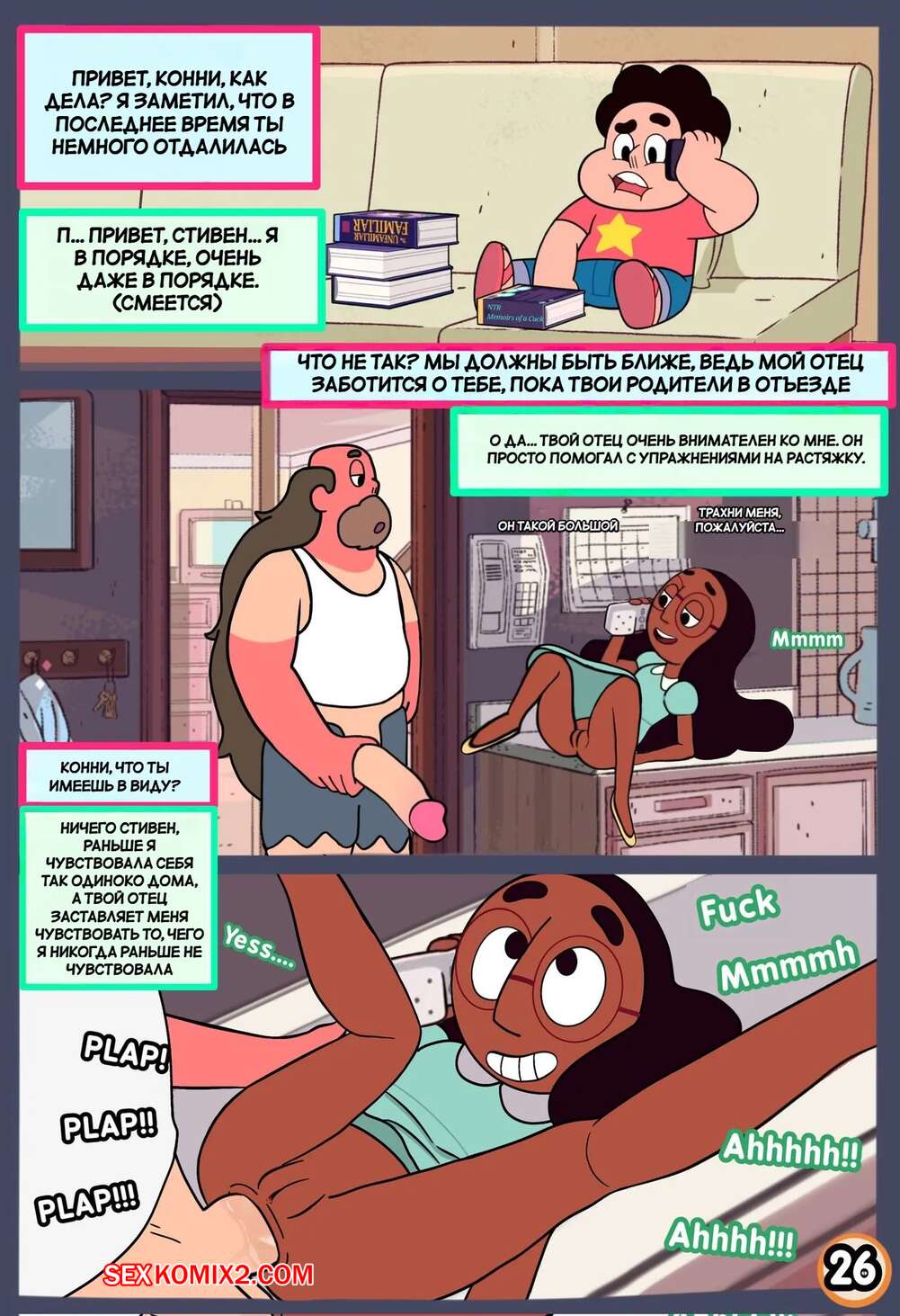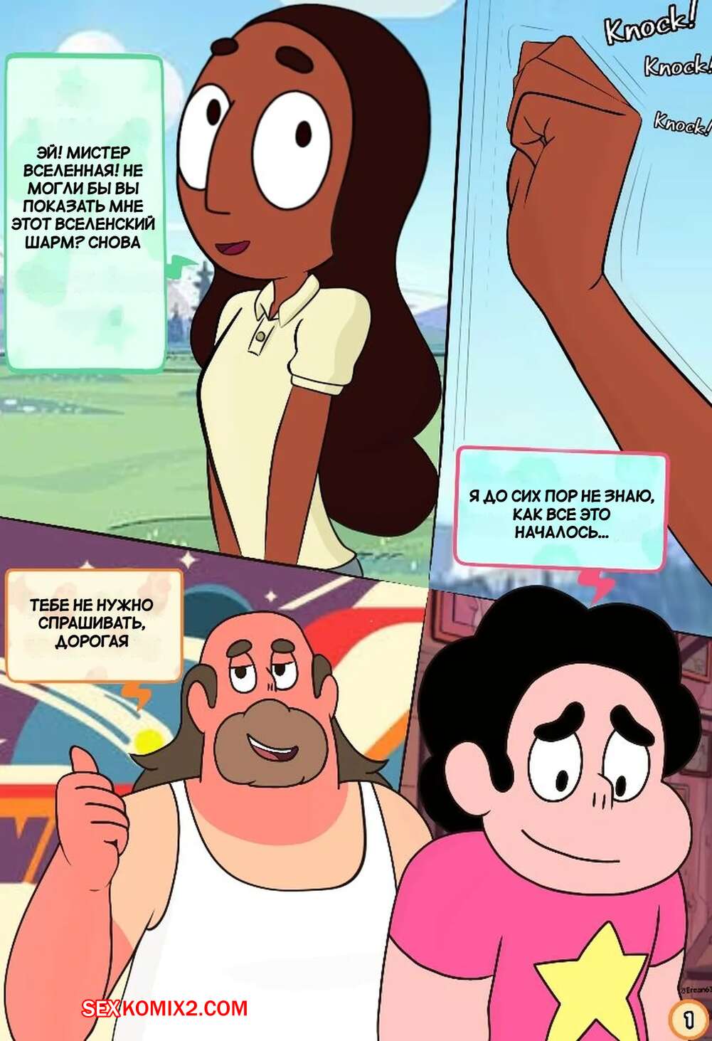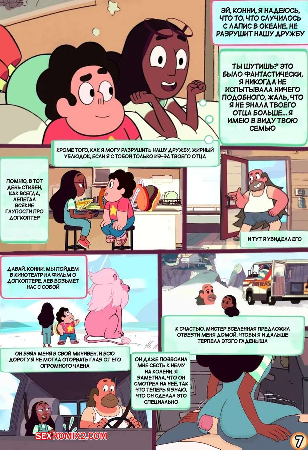 Порно комикс Вселенная Стивена. Куколд Стивен. Steven Cuckniverse. Erean63. Горячая красотка Конни встречается со Стивеном, но несмотря на это она без ума от большого члена отца парня. Девушка уединяется с Грегом и дает ему себя трахать, получая огромное удовольствие.