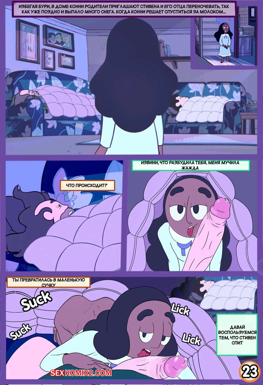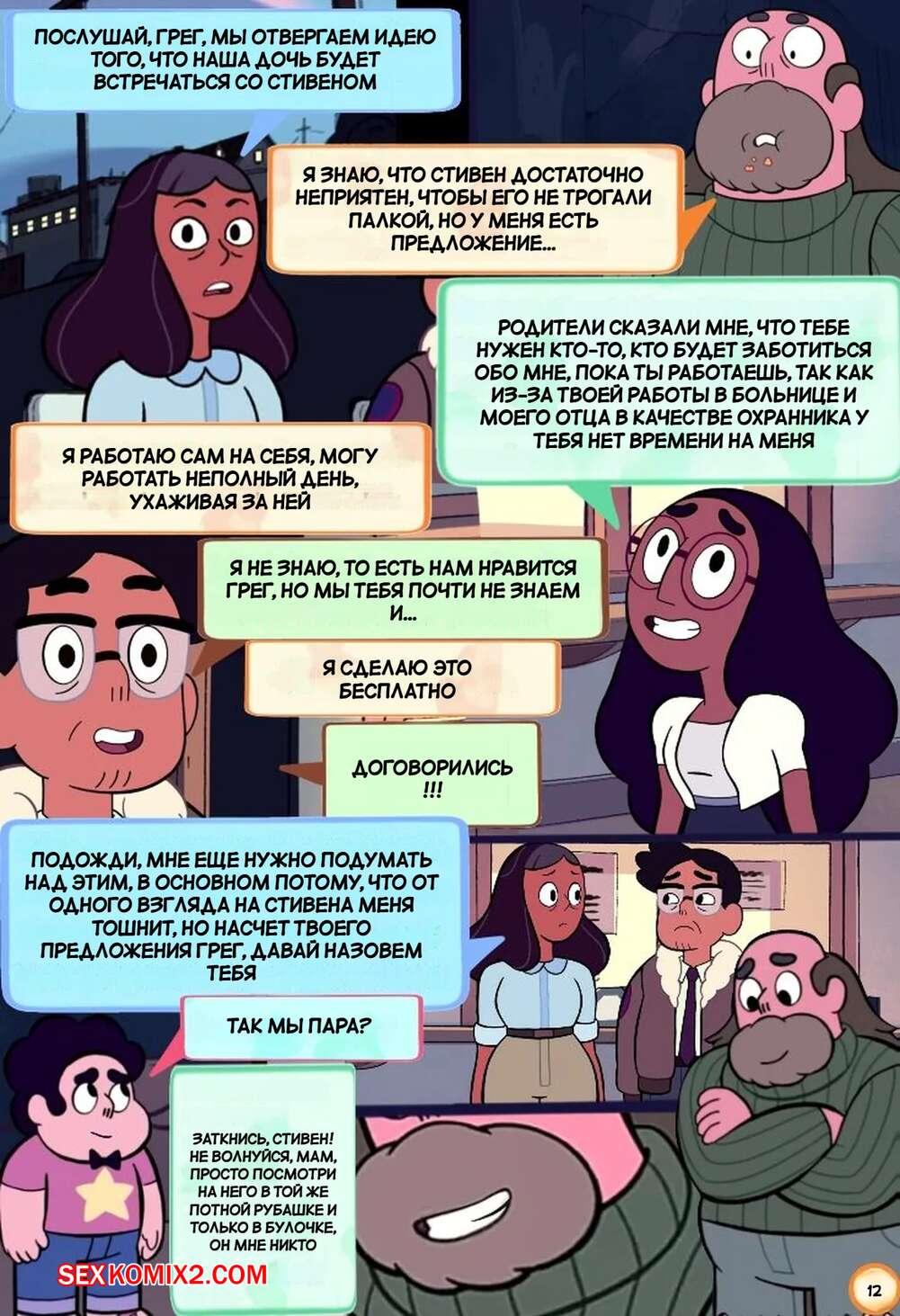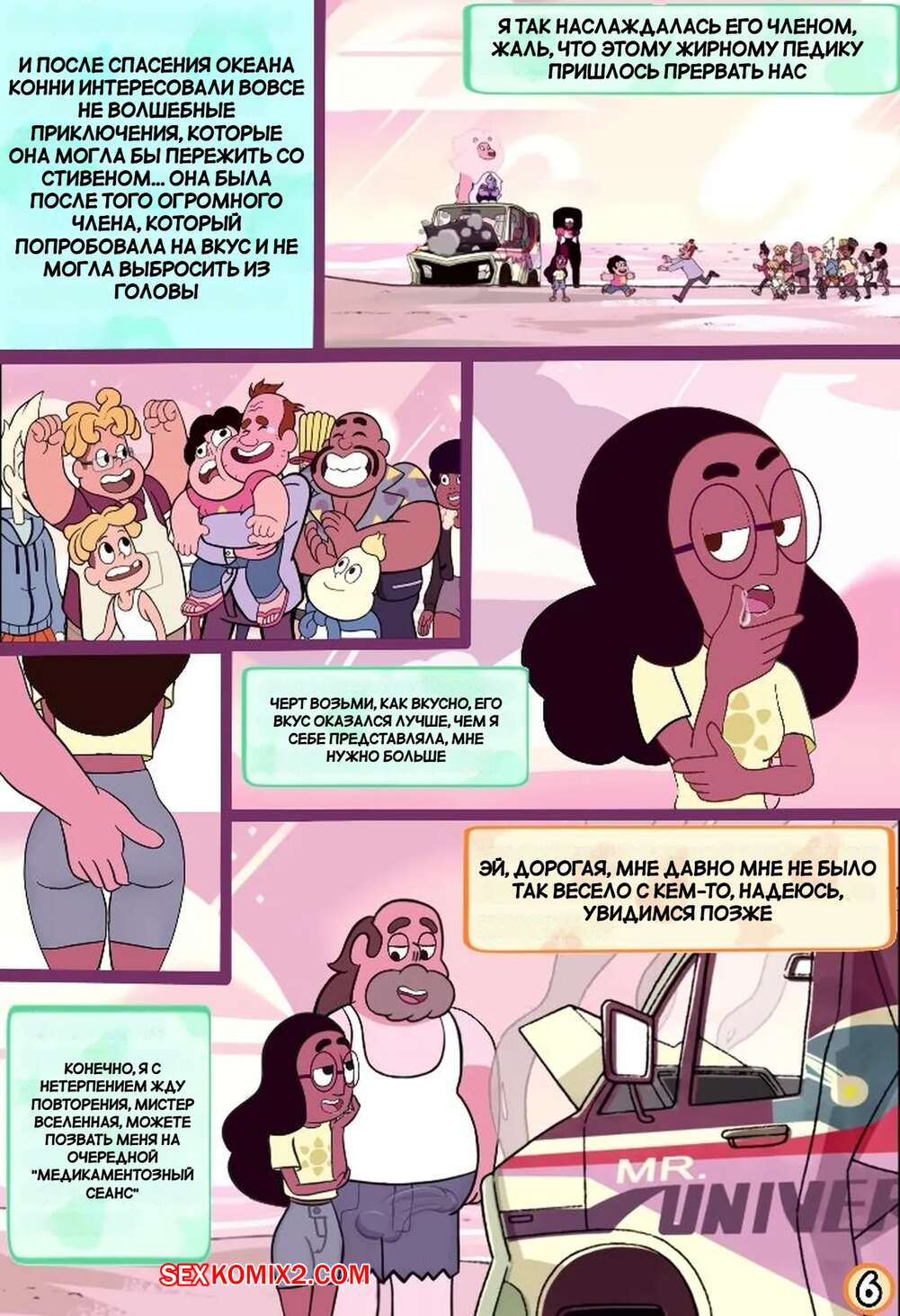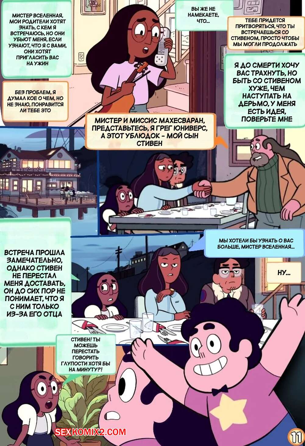 Порно комикс Вселенная Стивена. Куколд Стивен. Steven Cuckniverse. Erean63. Горячая красотка Конни встречается со Стивеном, но несмотря на это она без ума от большого члена отца парня. Девушка уединяется с Грегом и дает ему себя трахать, получая огромное удовольствие.
