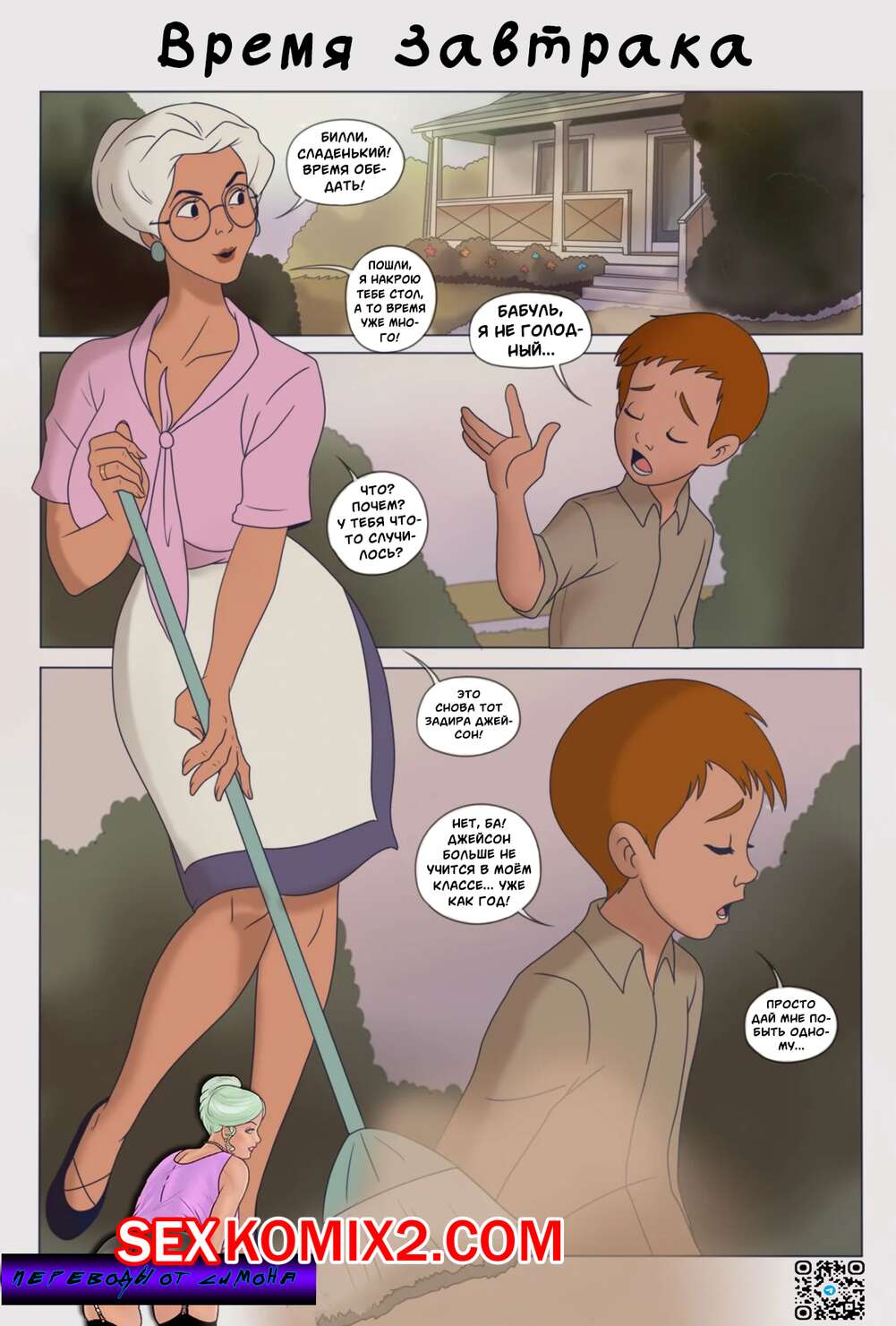 Порно комикс Время завтрака. Lunch Time. Milftoon Сисястая бабуля была очень возбуждена и решила повеселиться со своим внуком. Красотка разделась и раздвинула ножки перед парнем, после чего дала ему себя выебать.