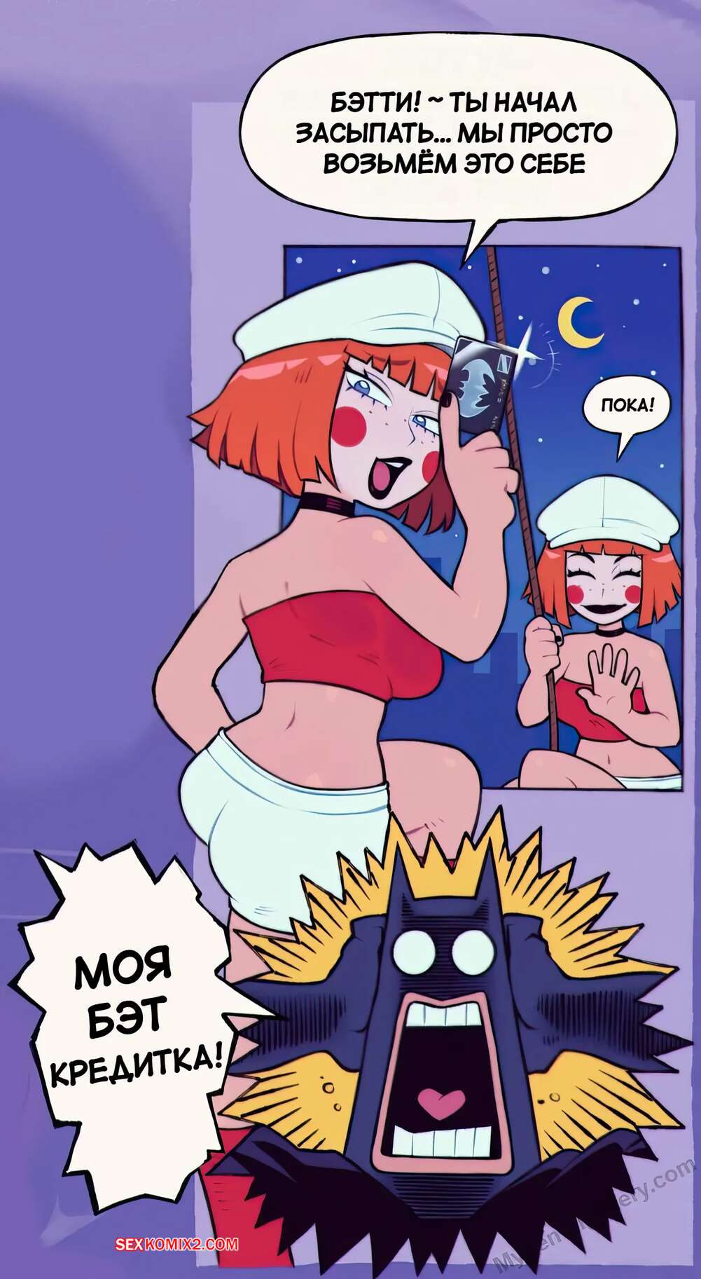 Порно комикс DC. Ди Ди. Dee Dee. SpeedoNSFW. Бэтмен поймал рыжую красотку Диди, но она решила отвлечь героя. Красотка соблазнила Бэтса шикарным телом, после чего дала ему выебать свою пизденку, после чего быстро сбежала.