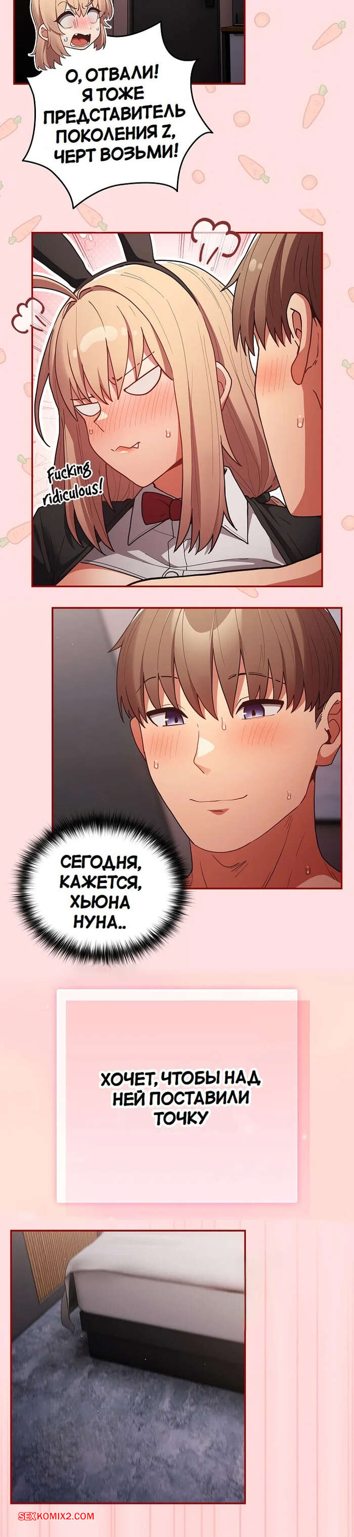Порно комикс Это делается не так. Часть 85. Thats not what I do Горячая блондинка усадила парня на кресло, а сама встала перед ним на колени и стала сосать его член. Девушке уже не терпится ощутить в себе хуй парня, поэтому она раздвигает перед ним ножки.