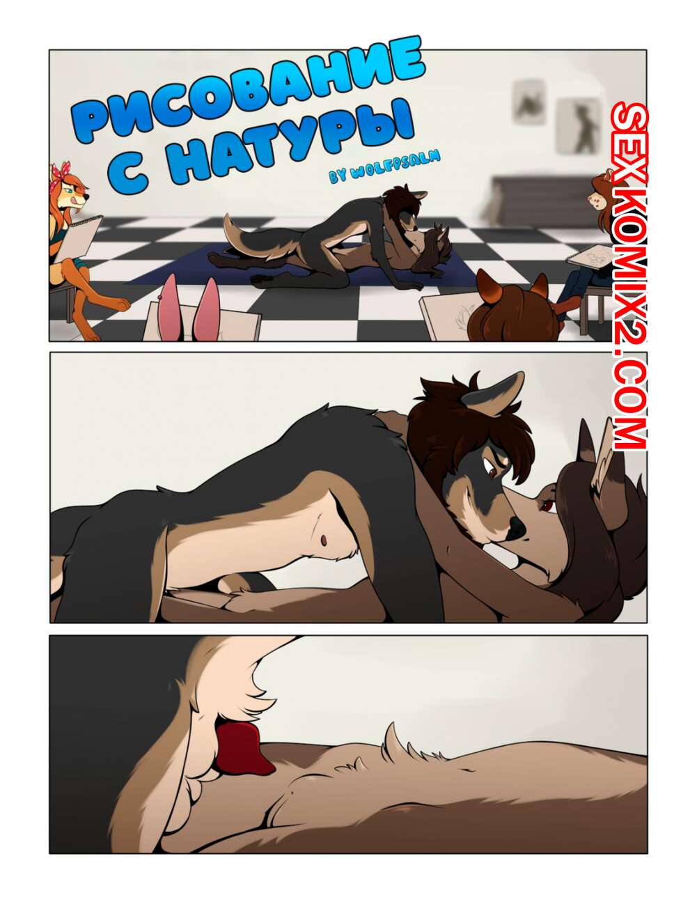 Порно комикс Фурри. Рисование с натуры. WolfPsalm Life Drawing На уроке рисования с натуры ученикам пришлось рисовать ебущуюся парочку, которые не стесняясь трахалась у всех на виду, окончив все обильным поливанием спермы.