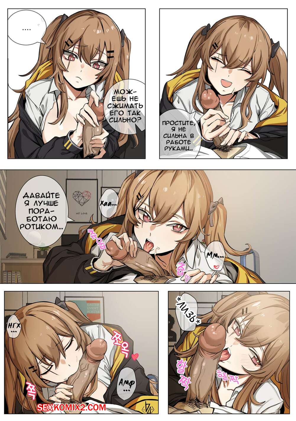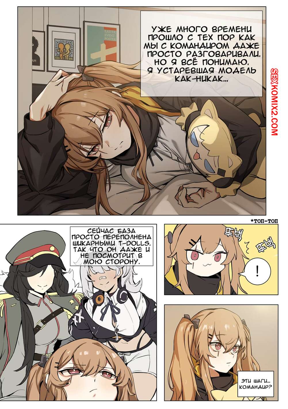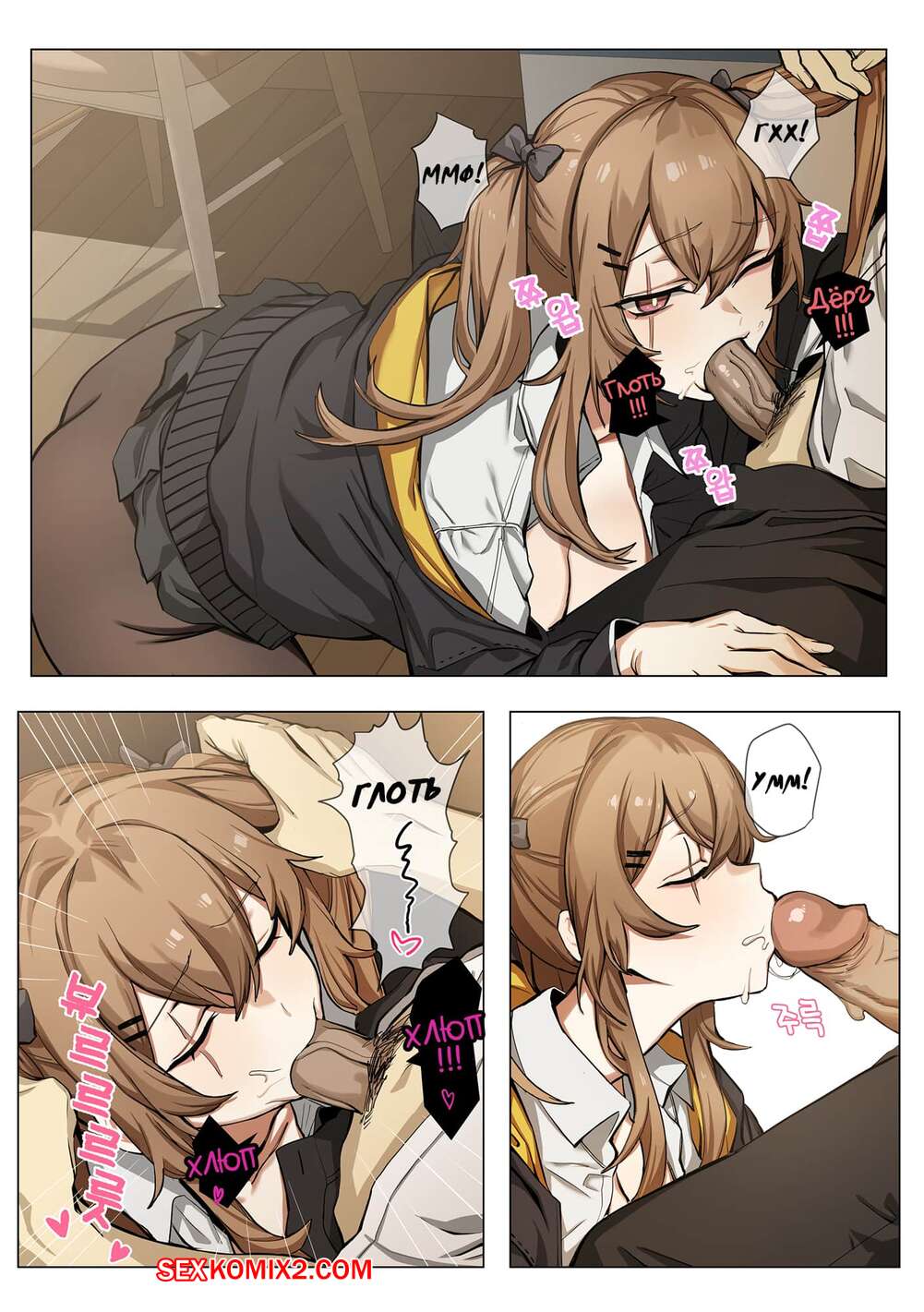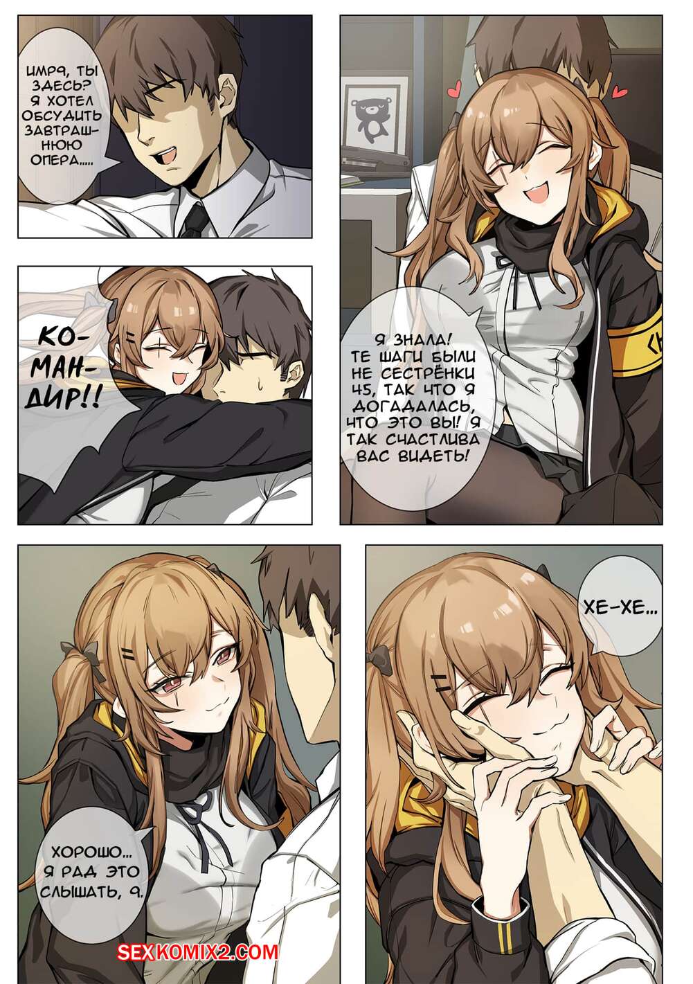 Порно комикс Girls Frontline. Часть 5. UMP9. Banssee Командир вызвал к себе красотку, с которой они давно не виделись. Как только она к нему зашла, он сразу заставил ее отсасывать его член и, как только он стал достаточно твердым, он раздел ее и вставил свой твердый хуй ей в пизду и хорошенько отъебал.