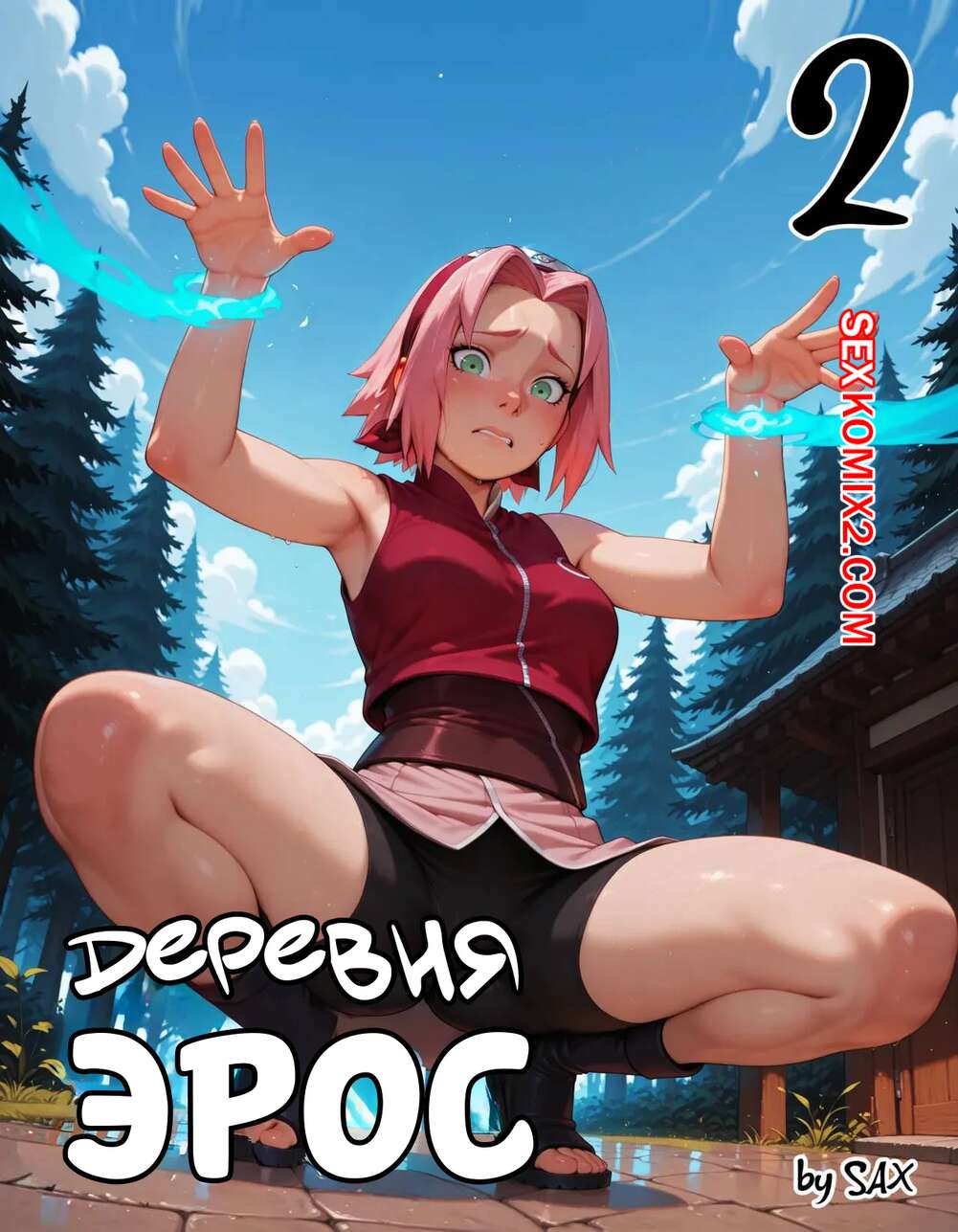 Порно комикс Наруто. Деревня Эрос. Часть 2. The Village of Eros. Sax Сакура отправилась в деревню Эрос, где она встретила на своем пути парня и вступила с ним в схватку. Он возбудил девушку и дал ей отсосать свой большой хуй, после чего как следует ее выебал.