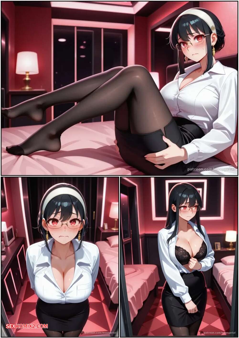 Порно комикс Хочешь поспорить. Часть 4. Wanna Make a Bet. Moon Petal Горячая брюнетка отправилась с парнем в мотель, чтобы трахнуться. Сучка осталась в сексуальном белье и стала сосать член парня, после чего раздвинула ножки и дала себя трахнуть.