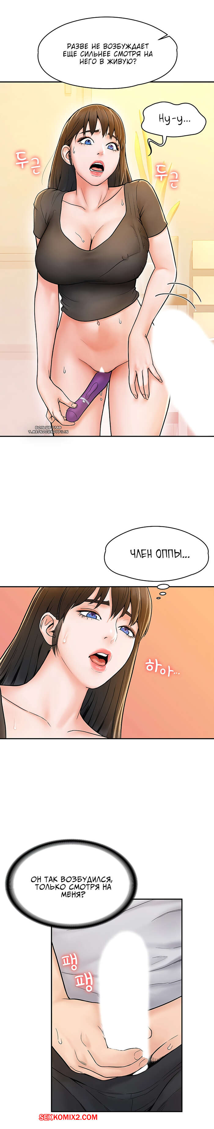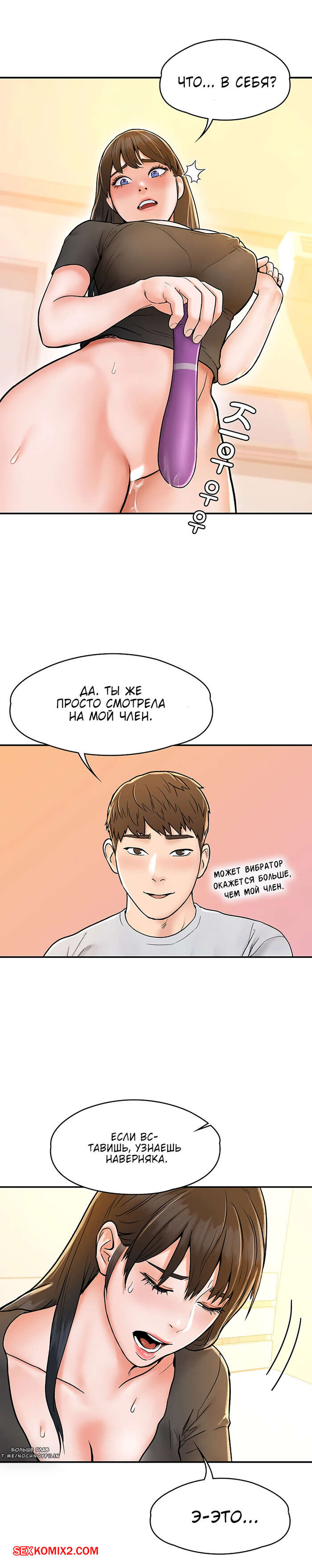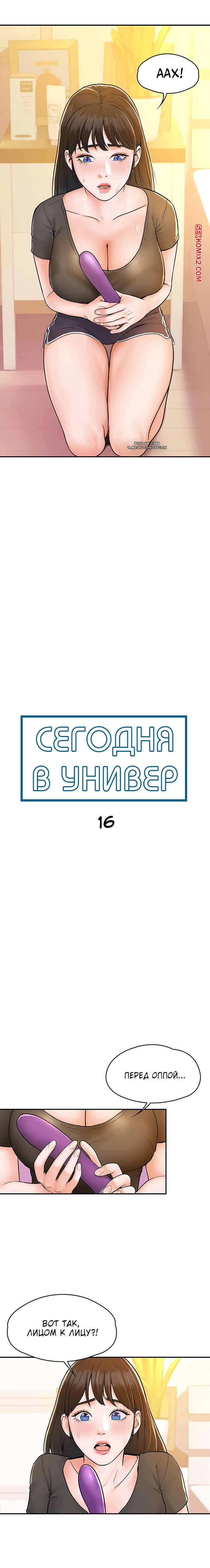 Порно комикс Сегодня в универ. Части 16 и 17 и 18. University today Горячая красотка брюнетка захотела испытать новых ощущений, поэтому попросила своего дружка подрочить перед ней свой большой хуй, пока она в этот момент будет дрочить свою пизденку большим страпоном.