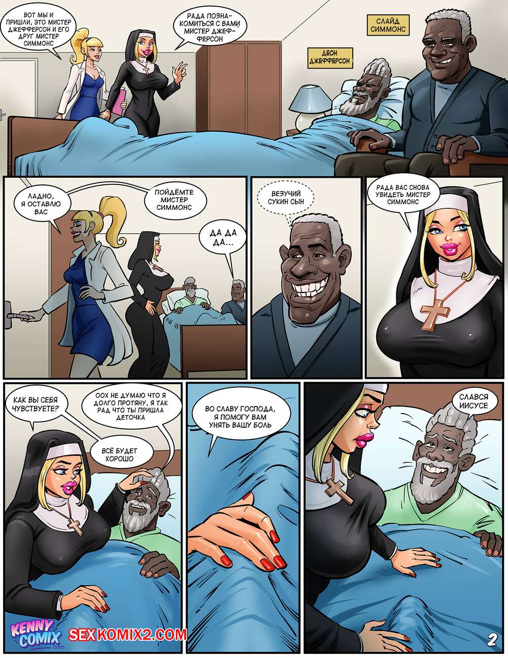 Порно комикс Божественная благодать. Heavenly Touch. Kennycomix. Penerotic Молодая сексуальная монашка пришла к черному дедку в больницу и решила сделать ему приятно. Она достала из трусов его большой черный хуй и хорошенько отсосала, доставив ему огромное удовольствие.