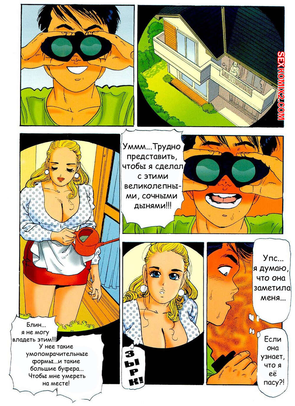 Порно комикс Криминальная плоть. Мисс Большая Грудь Парень подсматривал за горячей блондинкой милфой. Они встретились и она стала его соблазнять. Сучка позвала парня к себе, где отсосала его большой хуй и дала ему себя хорошенько выебать.